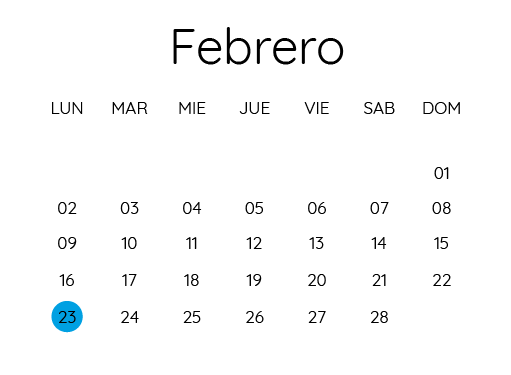 Febrero 23, Marzo 16, Abril 20, Mayo 11, Junio 22, Julio 20, Agosto 24, Septiembre 21, Octubre 19, Noviembre 16.