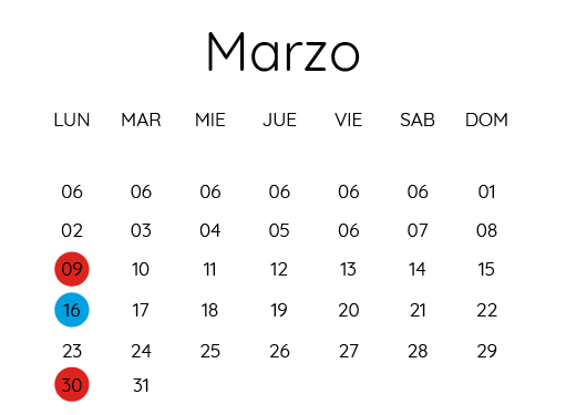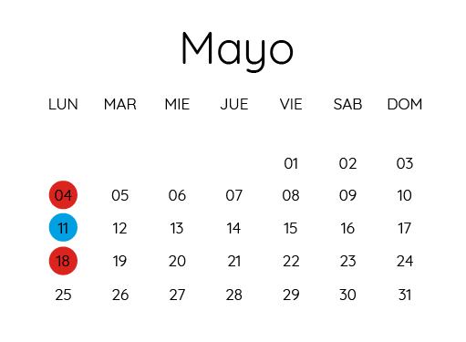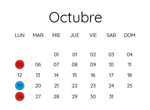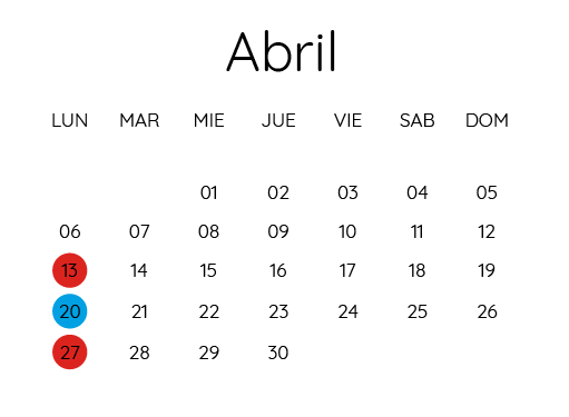 • 2 Lunes al mes.
