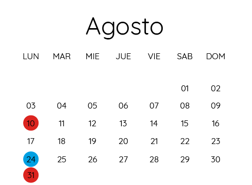 Las fechas pueden variar según feriados o situaciones de fuerza mayor.